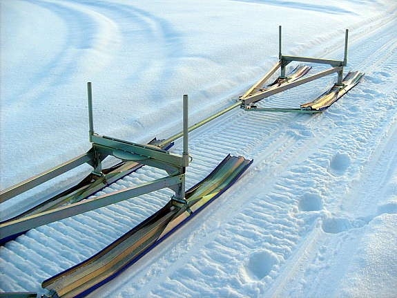 Løftefunsjon/slodd/glattebrett bakmontert på PROFF Sporsetter for sletting av spor i bakker eller prepp av løype uten spor.