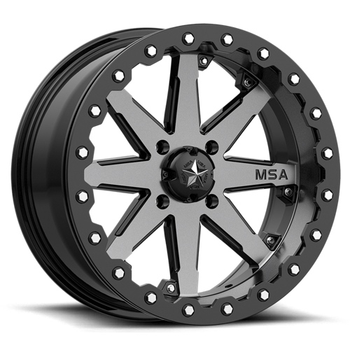 Det som gjør dette Beadlock ATV/UTV-hjulet annerledes enn resten er på grunn av et par unike MSA-attributter. Finishen som er brukt på dette hjulet er Gunmetal; en mørk tonet klarlakk som er lagt over toppen av den mikrobearbeidede hjulflaten. Gunmetal-finishen er komplettert med blank sort bilindustri-lakk kun tilbudt av MSA. Den unike M21 Lok-hjulkonstruksjonen sammen med overflatebehandlingen kaster raskt av smuss og gjørme og har en høy korrosjonsmotstand. Støttet av en full livstidsgaranti på strukturelle skader under normal bruk, bøyer du eller knekker du dette hjulet erstatter vi det.