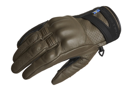 Kort hanskemodell i skinn med formede knokebeskyttere med perforert