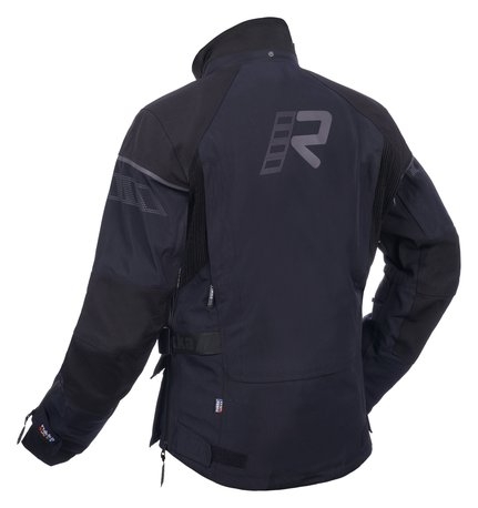 Rukka Adventure motorsykkeljakke for menn. Myk neopren i kragen. Integrert beskyttende ATS (= festet stormkrage) GORE-TEX stretchkrage, som kan skjules i lommen. Stretchpaneler under armene og på ryggen. Mansjetter med glidelås og vanntette innermansjetter. Breddejustering på over- og underarm med trykknapper. Regulerbar kant og mansjetter med borrelåsstramming. En skrittstropp og en lang glidelås for bukser. Justerbart midjebelte på sidene. 100 % pustende, vind- og vanntett GORE-TEX Pro 3-lags laminert for slitesterke og slitesterke CORDURA-skallstoffer®. Slitesterke CORDURA® 1500D-forsterkninger på skuldre og albuer. To vanntette nedre lommer med glidelås og trykknapper. To brystlommer med trykknapper. En stor vanntett lomme på baksiden